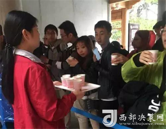 当游客在观光游览途中遭遇特殊天气时,乐善好施,无私奉献是我们华山人的家风;