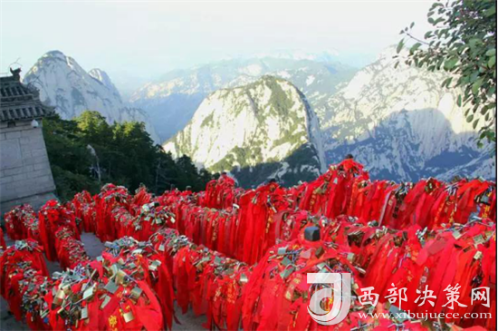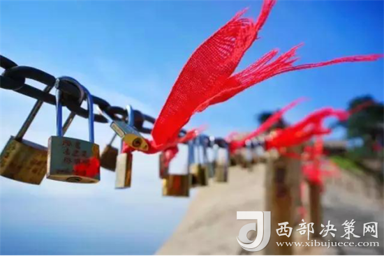 在华山,最美好的是在金锁关,将你我的名字用一把连心锁镌刻在一起,这样我中有你,你中有我。