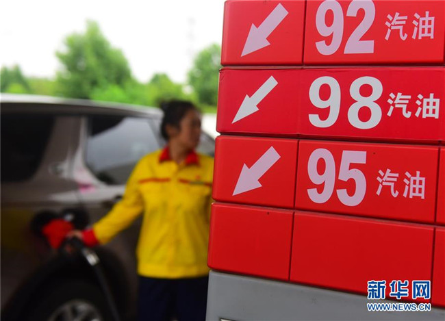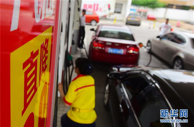 6月25日,江苏省无锡市一加油站工作人员在给车辆加油。新华社发(还月亮 摄)