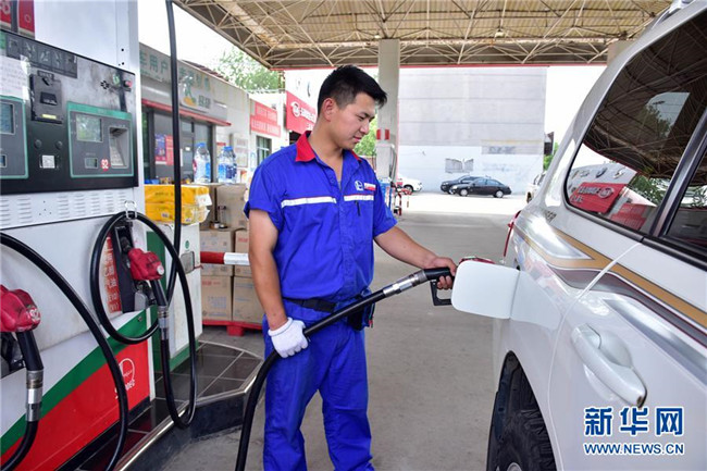 6月25日,河北省邢台市任县一家加油站工作人员在给车辆加油。新华社发(宋杰 摄)