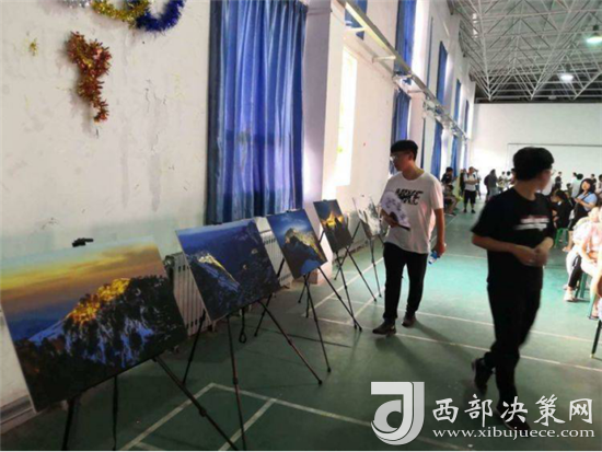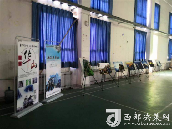 “演绎经典”校园活动开场前,舞台前方的投影大屏循环播放华山风光宣传片,奇险峻秀的大美华山风光引得现场观众赞叹不绝。舞台下方分别通过华山风光摄影展、活动展架等形式展示了华山四季的绝美风光,吸引众多师生驻足观看。