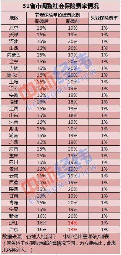 降低社保费率是社保降费新政的一项重要内容,据中新经纬客户端统计,今年以来,31省份公布了降低社会保险费率方案,将企业养老保险单位缴费比例降至16%的水平,并将阶段性降低失业保险费率、工伤保险费率的政策期限延长;此外,多省份也公布了今年的社保缴费基数。