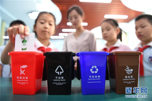 当日,安徽合肥市建平实验小学开展“垃圾分类”暑期公益小课堂,讲解垃圾分类知识,增强孩子们的垃圾分类意识和资源节约意识。 新华社记者 刘军喜 摄