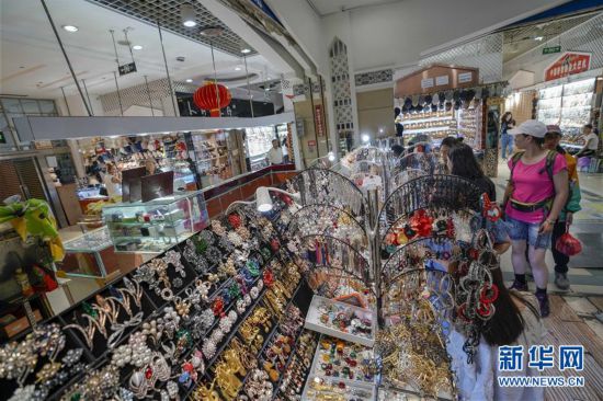 游客在新疆国际大巴扎景区购买手工艺品(7月13日摄)。