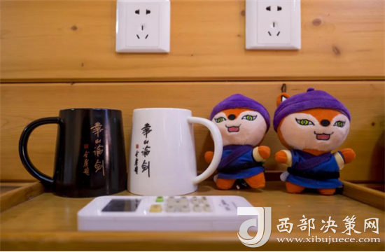 华山文创马克杯、和“华山吾侠”毛绒公仔点缀在桌上,简单明快的这一小片区域都像是在叙述华山论剑的故事。