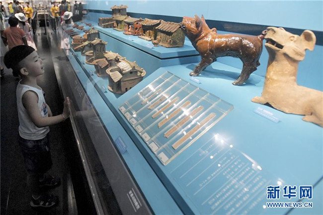 7月24日,小朋友在湖南省博物馆“湖南人——三湘历史文化陈列”展馆参观。