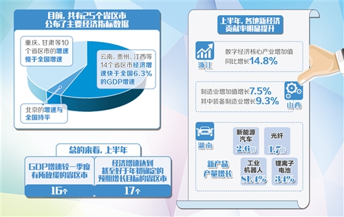 原标题:25个省区市陆续公布上半年“成绩单”:各地经济运行平稳 新兴动能贡献突出
