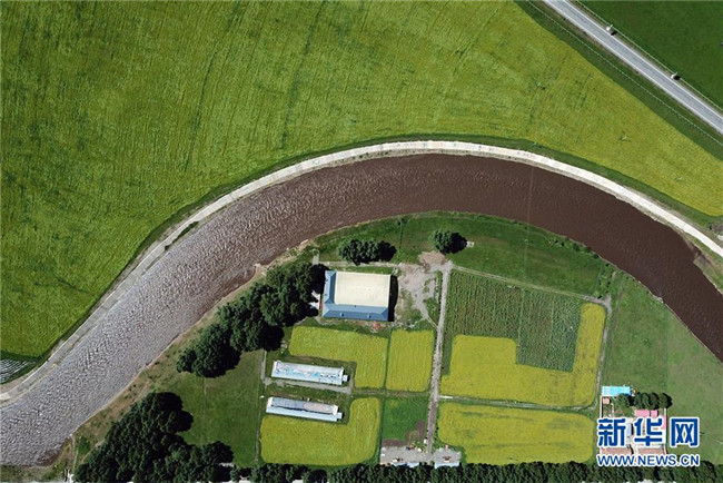 7月29日在碌曲县拍摄的洮河河畔的油菜花田(无人机拍摄)。新华社记者 马宁 摄