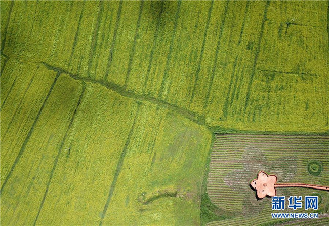 7月29日在碌曲县拍摄的油菜花田(无人机拍摄)。 新华社记者 马宁 摄