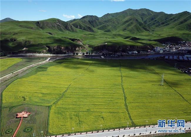 盛夏时节,位于青藏高原东北部的甘肃省甘南藏族自治州碌曲县油菜花田美不胜收。