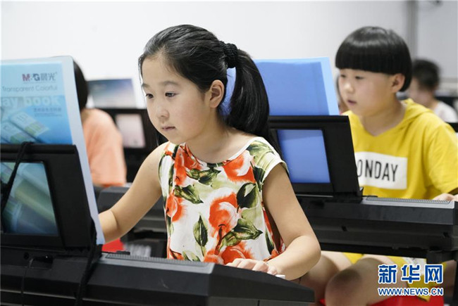 7月30日,学生在河北省涉县青少年活动中心学习电子琴。