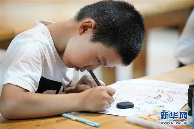 7月30日,学生在河北省涉县青少年活动中心画画。