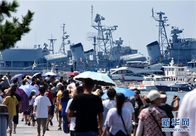 8月6日,游客前往青岛海军博物馆参观。 暑期旅游旺季,海滨城市青岛各景区、景点游人如织。 新华社记者 李紫恒 摄
