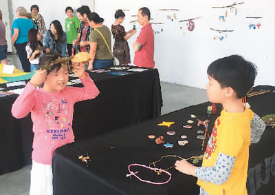 吴静好和弟弟金羿安(右)在参观社区美术营作品展