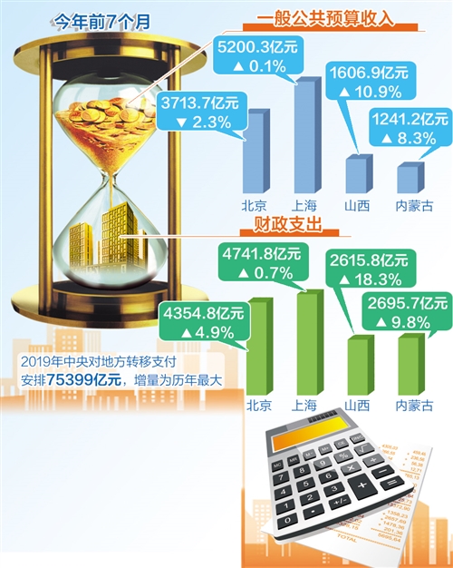 财政部日前发布了前7个月全国财政收支数据,与此同时各地也陆续晒出今年前7个月财政收支“账本”。受“史上最大规模”减税降费及经济下行压力加大等多方面因素影响,各地财政“账本”呈现出怎样的特点?面对收支平衡压力,又采取了哪些实招应对?经济日报记者采访了相关人士。