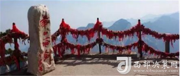 说到北峰,不可不提的自然是华山论剑了,在峰顶有一块石牌,上面是金庸先生亲笔题写的“华山论剑”,此处也成为游客登临华山必到之处。