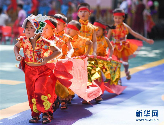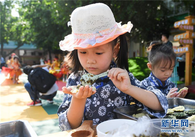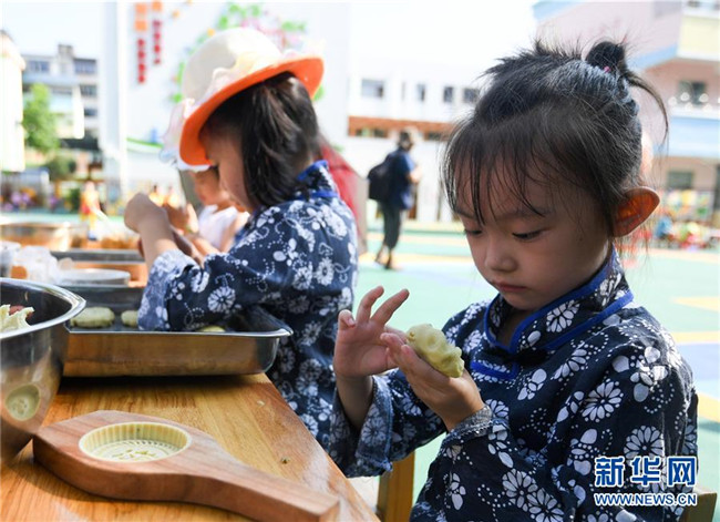 为丰富孩子们的暑期生活,江西省赣州市赣县区城关幼儿园开设了民俗课堂,让孩子们通过参与制作客家美食、体验客家民俗、表演客家曲艺等活动“感悟传统、饮水思源”。新华社记者 陈晔华 摄