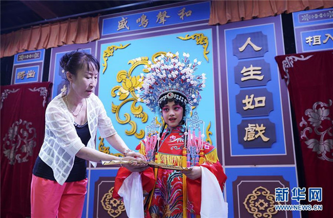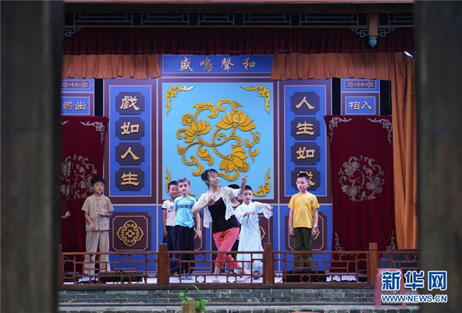 暑假期间,河北省秦皇岛市北戴河“裴艳玲艺术传承基地”——梨园小院开设京剧培训班,免费教授孩子们京剧表演艺术,同时借助基地平台为中外游客演出,锻炼孩子们的表演技能,传承戏曲艺术。 新华社记者 邢广利 摄