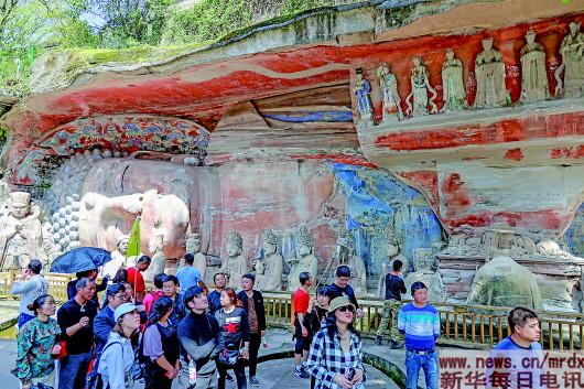 游客在世界文化遗产——大足石刻的宝顶山景区参观。记者 刘潺 摄