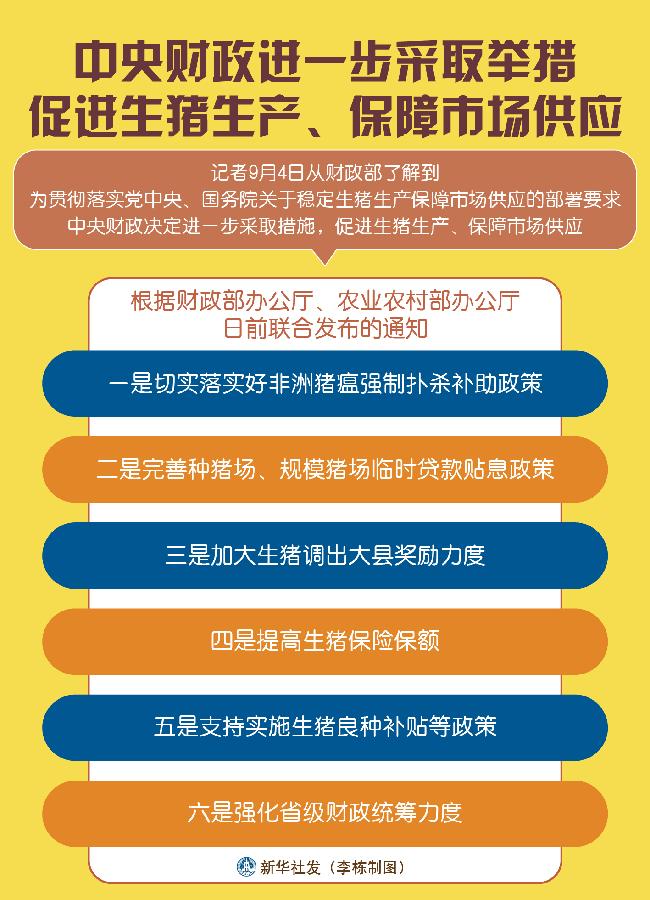 记者4日从财政部了解到,为贯彻落实党中央、国务院关于稳定生猪生产保障市场供应的部署要求,中央财政决定进一步采取措施,促进生猪生产、保障市场供应。