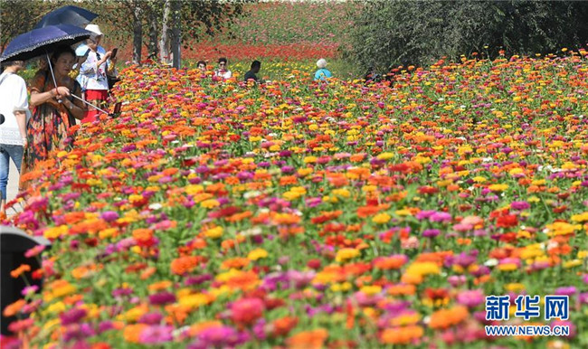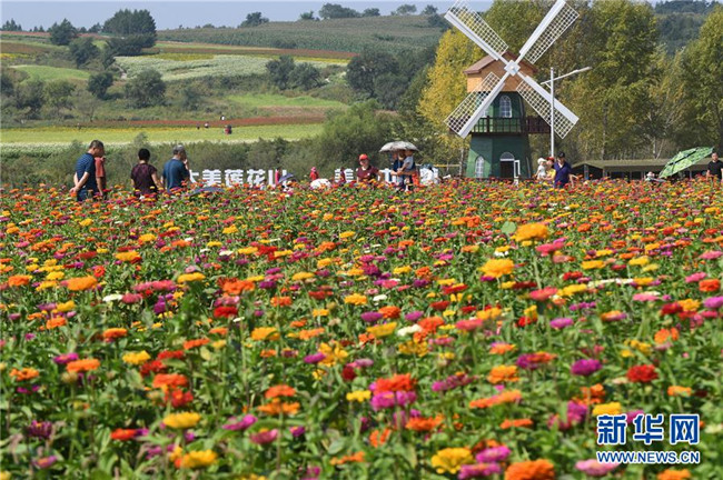 9月4日,长春市莲花山生态旅游度假区花田里鲜花绽放。