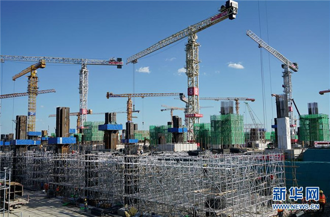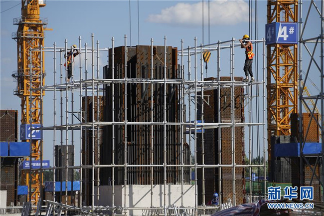 工人在京雄城际铁路雄安站施工(8月29日摄)。新华社记者 邢广利 摄