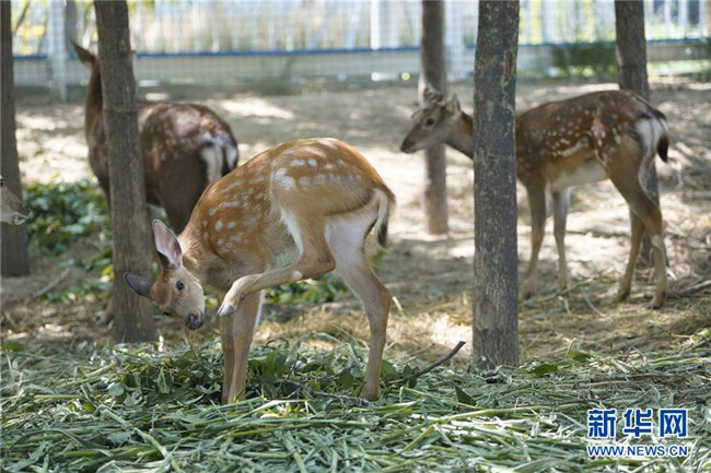梅花鹿在雄安市民服务中心内休憩(8月30日摄)。新华社记者 邢广利 摄