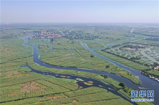 这是8月31日使用无人机拍摄的白洋淀内村庄。新华社记者 牟宇 摄