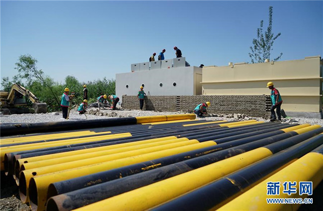 这是8月31日拍摄的白洋淀望月岛污水净化工程施工现场。新华社记者 牟宇 摄