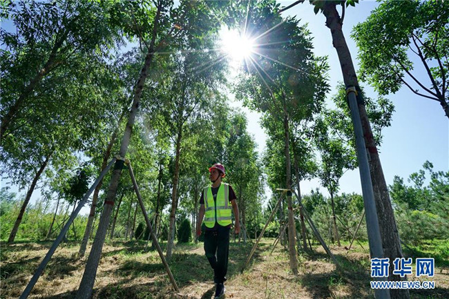 一名护林员在千年秀林内巡视(8月29日摄)。新华社记者 牟宇 摄