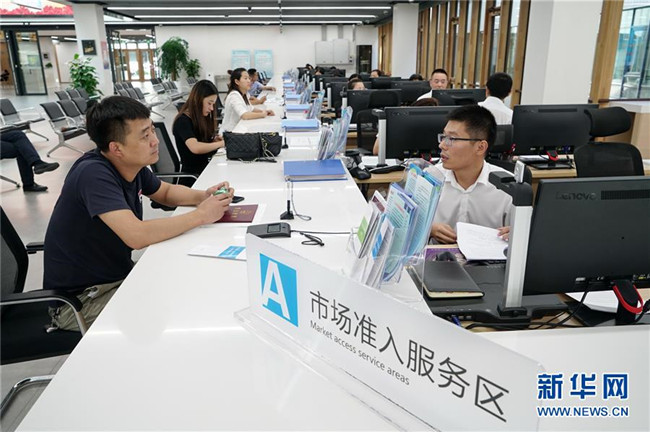 企业工作人员在雄安新区政务服务中心内办理业务(8月30日摄)。新华社记者 牟宇 摄