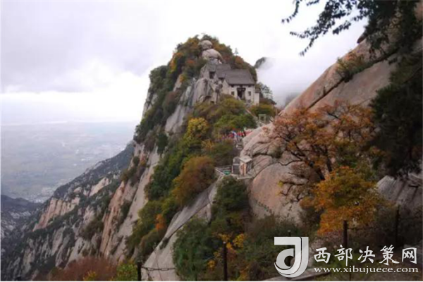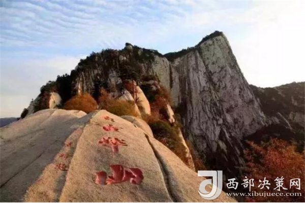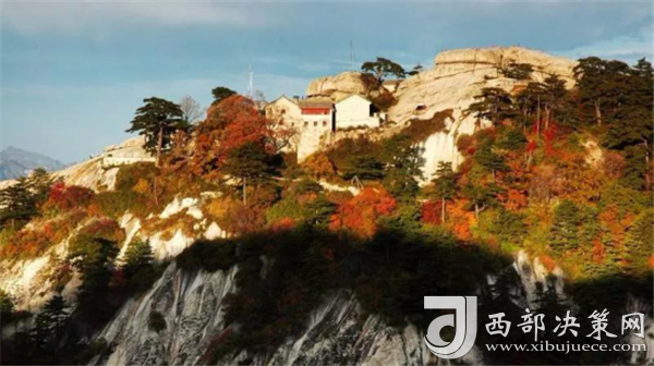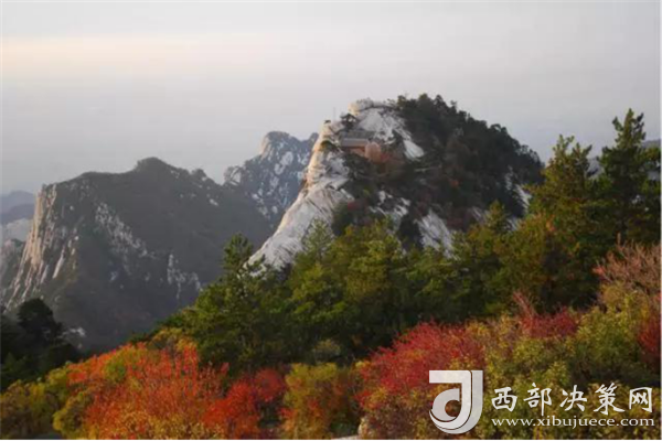 秋天的华山,温度适中,红叶满山,山崖为底,松桧为墨,是休闲旅游的最佳季节。
