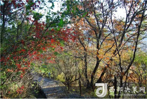 从山脚下的郁郁葱葱到山顶上的红黄相间,华山上的每一个台阶都浸染在了红叶的绚烂中。