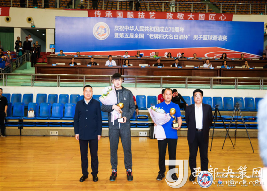 9月19日晚,由贵州茅台酒厂(集团)有限责任公司、山西杏花村汾酒集团有限责任公司、陕西西凤酒厂集团有限公司与泸州老窖股份有限公司共同主办,泸州老窖股份有限公司承办的庆祝中华人民共和国成立70周年暨第五届“老牌四大名白酒杯”男子篮球邀请赛(以下简称“男篮邀请赛”)在酒城泸州奥林匹克体育公园圆满闭幕。贵州茅台酒股份有限公司监事会主席罗国庆,山西杏花村汾酒集团有限责任公司党委委员、董事、工会主席李明强,陕西西凤酒厂集团有限公司工会主席陈军红,泸州老窖股份有限公司党委副书记、总经理林锋及党委副书记、纪委书记、工会主席江域会,信息总监苏王辉等领导和嘉宾出席了闭幕式。