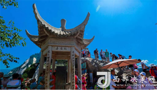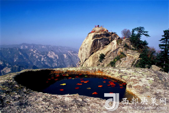 西峰海拔2082.6米,因峰巅有巨石形状好似莲花瓣,古代文人多称其为莲花峰、芙蓉峰。徐霞客《游太华山日记》中记述:“峰上石耸记,有石片覆盖其上,如荷花。”当指此石。西北绝崖万丈,似刀削锯截,其陡峭巍峨、阳刚挺拔之势是华山山形之代表,因此古人常把华山叫莲花山。