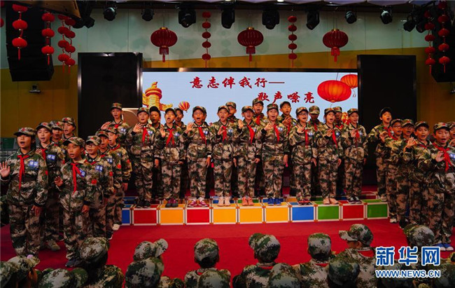 当日,北京市建华实验学校小学部举行“意志伴我行——歌声嘹亮”红色歌曲大合唱活动。师生们在歌声中接受了一场爱国主义教育。 新华社记者 吴建路 摄