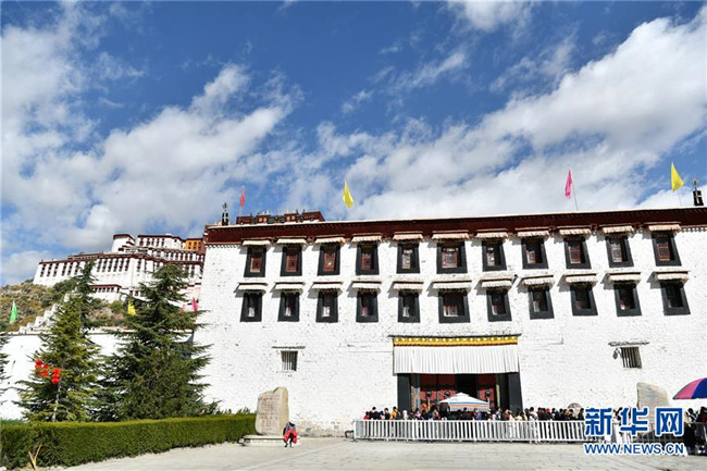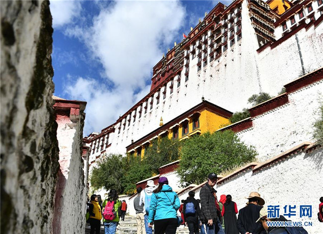 10月15日,游客凭免费预约券排队进入布达拉宫景区。