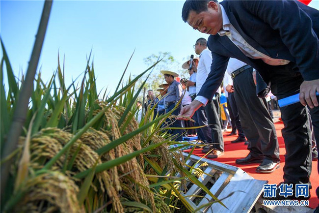 这是第三代杂交水稻新组合试验示范衡南基地测产现场(10月21日摄)。 新华社记者 陈泽国 摄