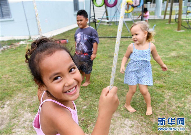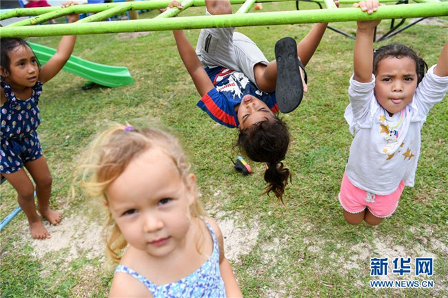 10月26日,在库克群岛首都阿瓦鲁阿的阿皮尼考学校,幼儿园的孩子在操场上玩耍。