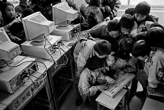 2001年10月,河南省宜阳县,学校收到了爱心人士送来的电脑,孩子们第一次触摸键盘。