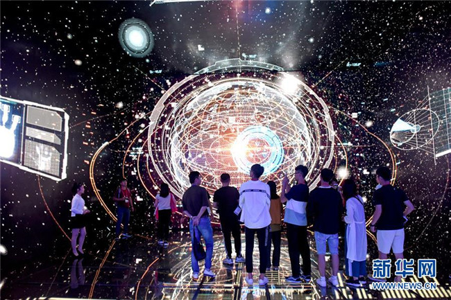 大学生在安徽淮南市大数据展示中心参观,了解大数据产业在智慧城市建设中的作用(7月9日摄)。 新华社发(陈彬摄)