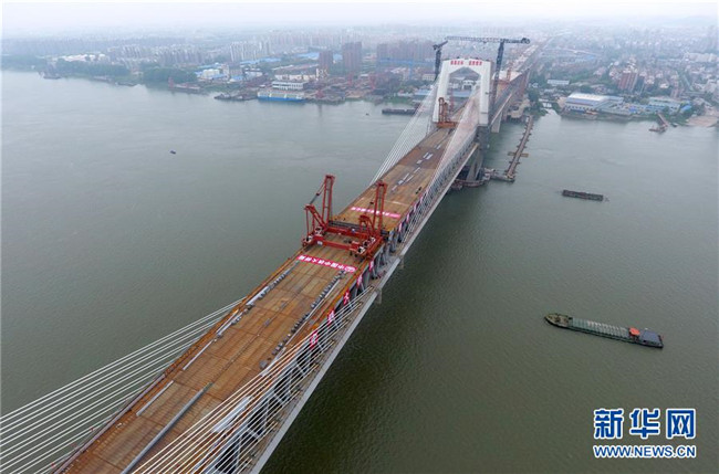 这是合龙后的商合杭铁路芜湖长江公铁大桥(4月26日无人机拍摄)。新华社记者 张端 摄
