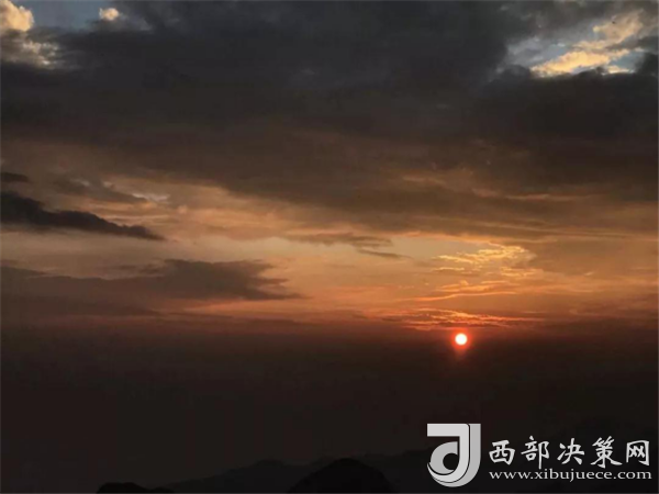 夜幕自东方悄然隐退,晨曦初露,渐渐霞光瑰丽,云源奔涌。瞬间,一轮火球喷薄而出,继而光芒四射,气象万千,整个世界大放光明,现场的游人身心为之一振。待云雾散尽,苍松翠柏,则更加清丽悦目,美妙神奇。