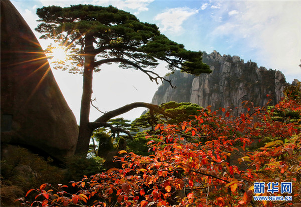 黄山风景区秋高气爽,秋意渐浓。新华网发(叶永青 摄)