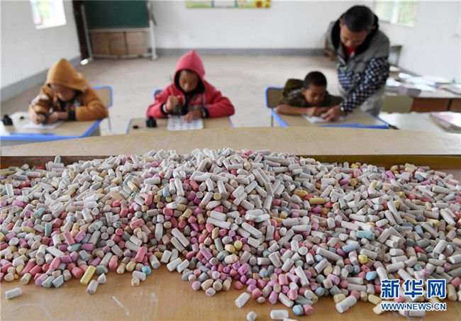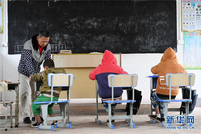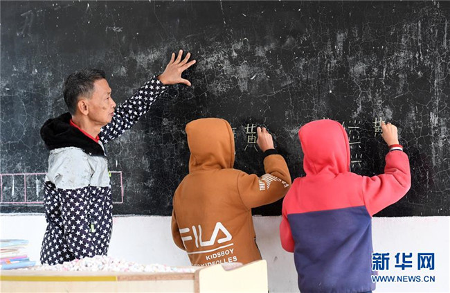 11月19日,在广西上思县那琴乡中心小学逢通村教学点,梁志雄给学生上课。新华社记者陆波岸摄
