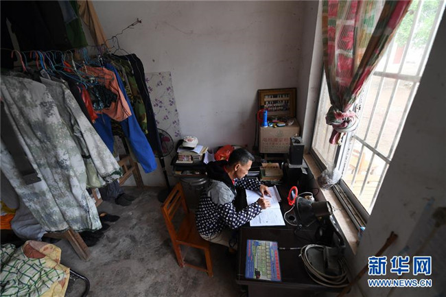 11月19日,在广西上思县那琴乡中心小学逢通村教学点,梁志雄在办公室兼卧室里备课。新华社记者陆波岸摄