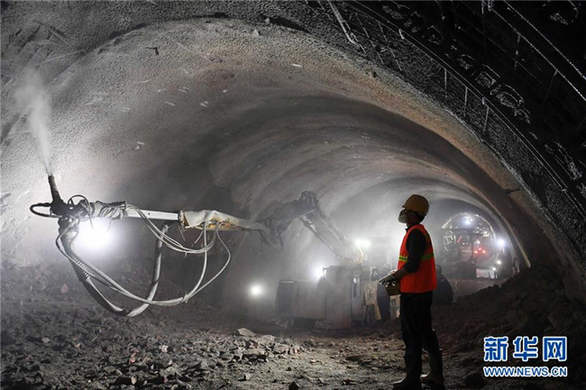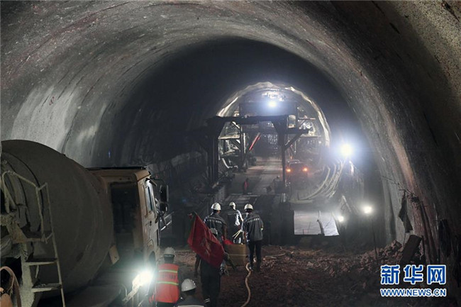 11月25日,中铁十八局集团工作人员在三家村隧道作业。