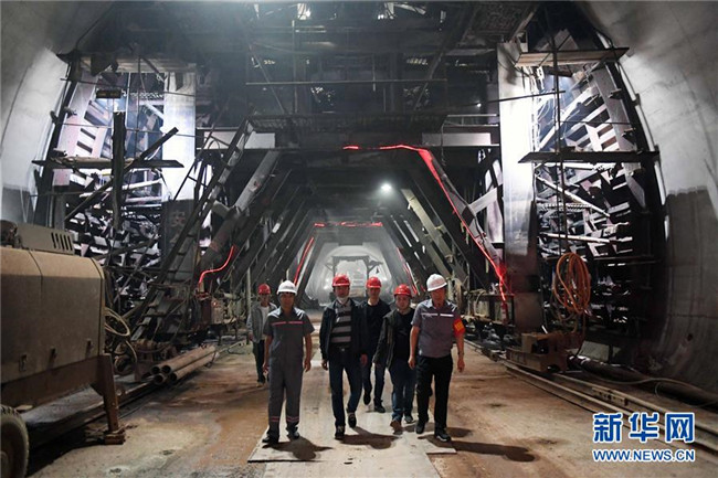 11月25日,中铁十八局集团工作人员从三家村隧道工地走出。