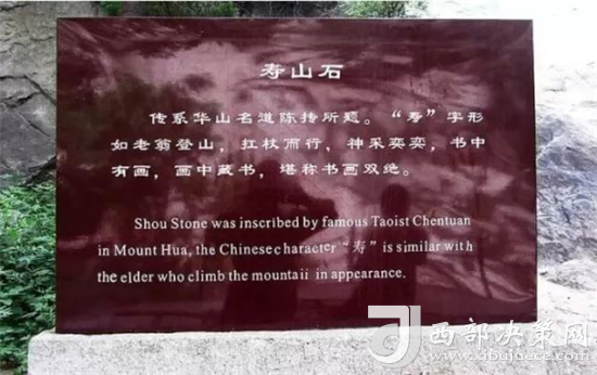 “寿山”二字在华山峪进山一公里处山崖上,为道祖陈抟所题书。