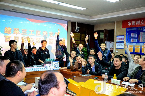 作用发挥有保障。综采三工区党支部常态化开展“两学一做”学习教育,秉承不务虚、不作秀,真学真做,用支部战斗堡垒作用和党员先锋模范作用的发挥来检验“做”的成效。支部在以“三会一课”为载体的基础上,积极参与安全生产、创值增盈、全员创客、员工管理、薪酬分配等重大事项的决策,团结带领工区全体干部职工努力完成各项工作任务。在如何有效发挥党员先锋模范作用上,该支部成立了党员技术攻关小组、党员修旧利废小组、青年党员突击队、党员先锋岗等“党员创客四大平台”,特别是在“110-N00工法”厚煤层无煤柱开采技术实施期间,积极引导全体党员主动投身到新功法实施全过程。党员技术攻关小组在针对110工法实验中发现的问题,研发了胶运顺槽迈步式自移超前支架,降低了留巷作业对工作面正常推采所带来的影响,工作面推采由每天14刀提升到20刀。